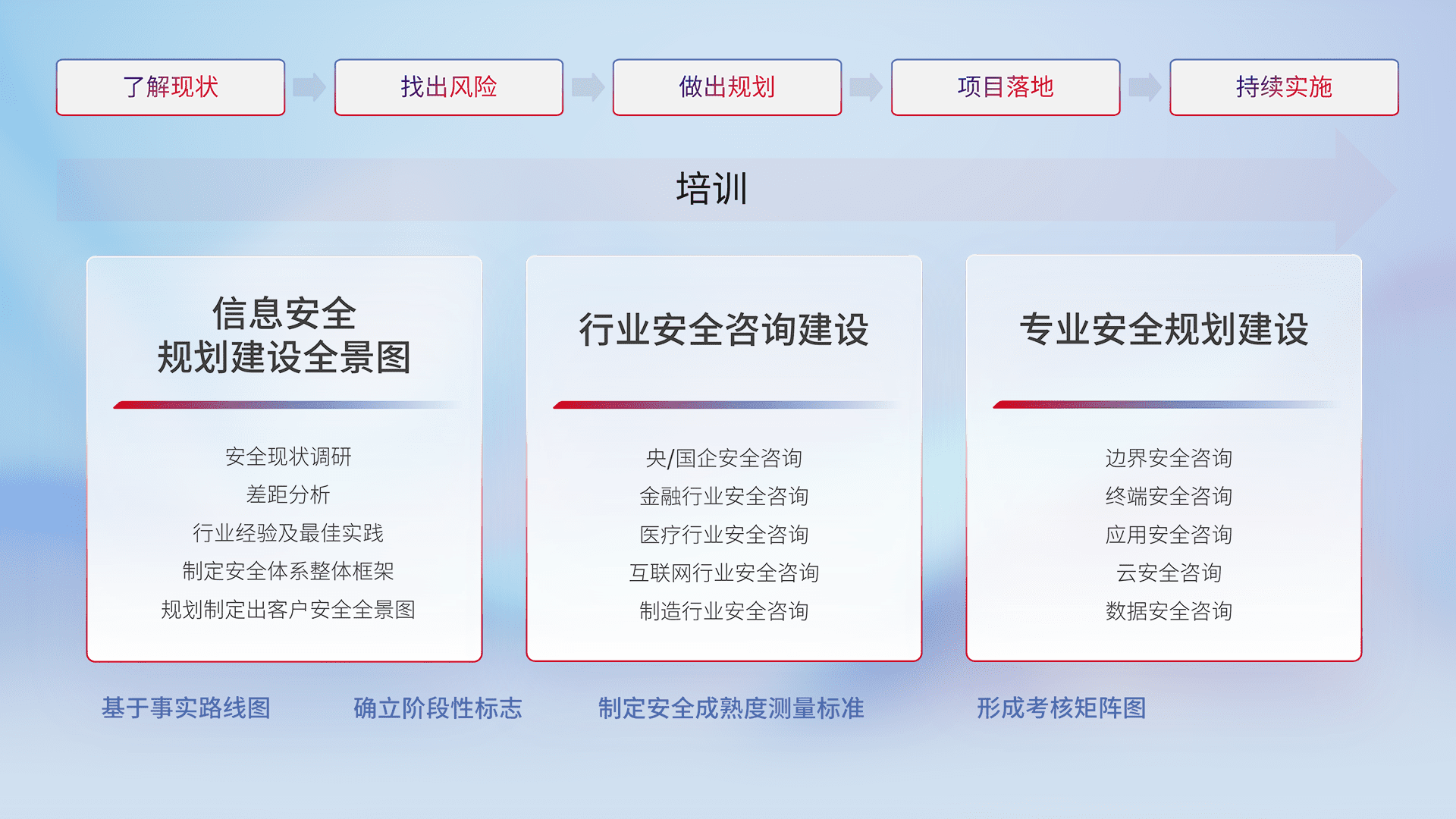 梳理客户信息安全现状调研、、差距分析结果,,,结合行业先进经验及最佳实践,,制订客户的信息安全管控体系总结架构,,,,最终形成一个完整的客户信息安全规划与建设的全景图。。。。