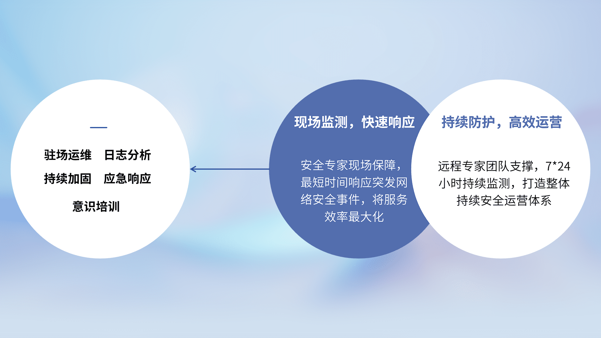 针对客户行业特性,,,,提供专属的一站式安全管理服务,,帮助客户全面感知网络空间威胁,,,,通过安全专家的线上、、线下防护支持,,,,实现风险闭环,,,,将安全保障常态化,,,为客户打造常态化安全运维运营服务。。
