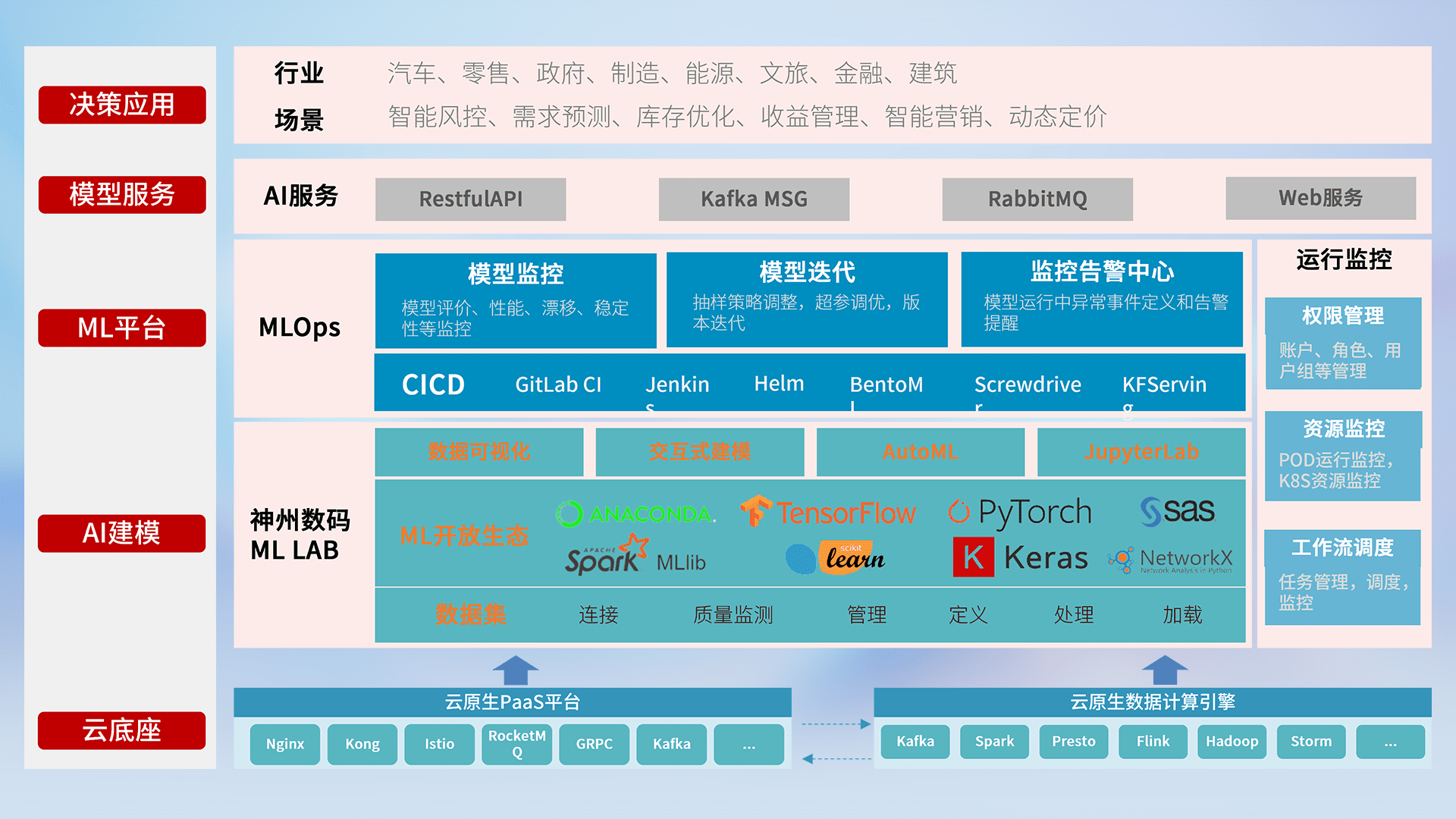 数据+模型双引擎驱动,,,面向智能服务场景,,,,快速灵活利用AI技术,,,支持业务决策,,,助力企业智能化转型破局。。。。